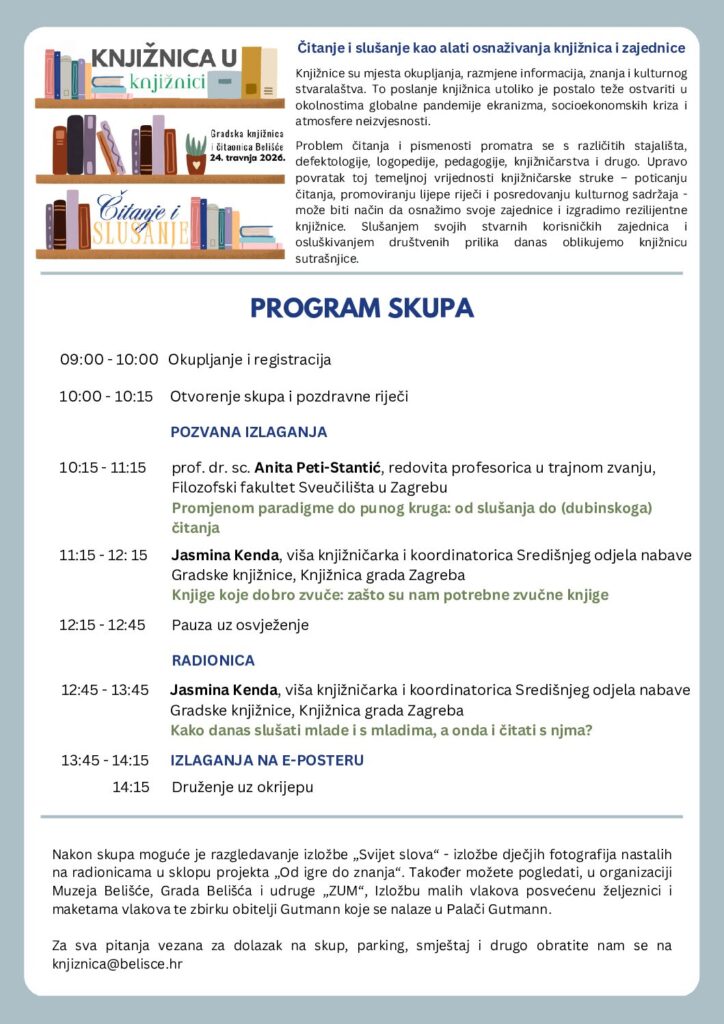 Mjesto i datum održavanja: Gradska knjižnica i čitaonica Belišće, 24. travnja 2026.
